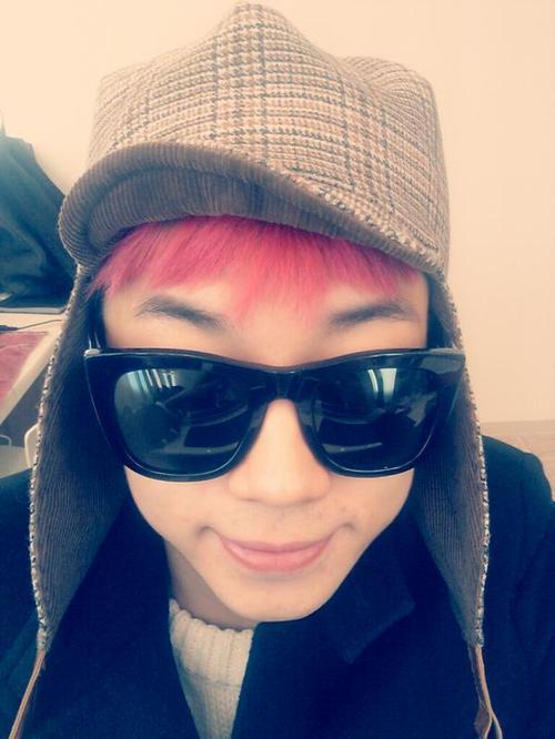 공개된 사진 속 장우영은 체크무늬 모자를 쓰고 검정 선글라스를 낀 채 정면을 응시하고 있다. 이때 눈에 띄는 것은 이마에 보이는 장우영의 앞머리 색깔. 핑크빛의 머리 색이 그의 귀여움을 한층 돋보이게 했다.