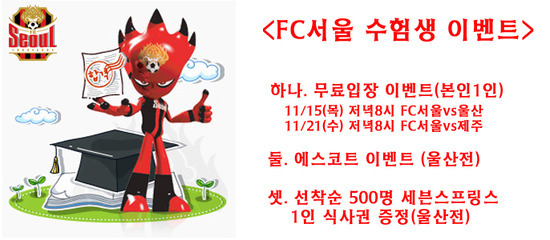 FC서울이 올해 2013 대입 수학능력시험을 치른 수험생들을 위해 다양한 이벤트를 마련했다.