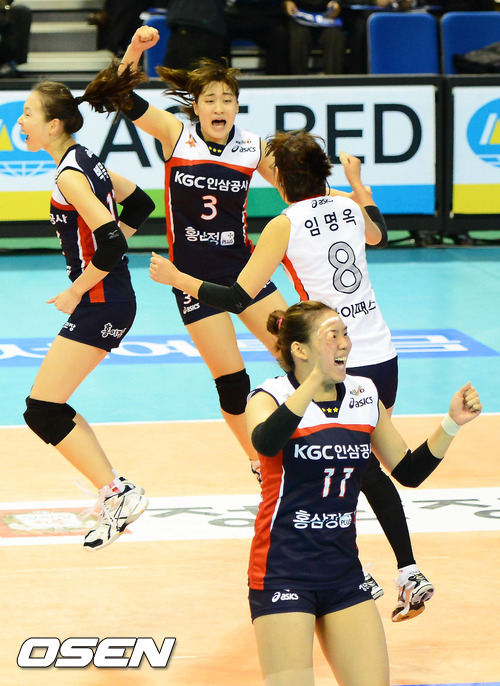 3일 오후 대전 충무실내체육관에서 열린 NH 농협 2012-2013 프로배구 V 리그 KGC인삼공사와 흥국생명의 경기에서 KGC인삼공사가 여자부 흥국생명과의 경기에서 선수들의 고른 활약을 앞세워 3-1(17-25 25-17 25-22 27-25)로 역전승하며 시즌 첫 승을 거뒀다.