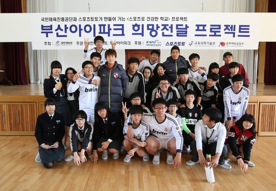 부산의 골미남 임상협과 2012 런던 올림픽 동메달의 주역이자 부산의 심장 이범영이 지난 13일 부산의 가락중학교를 찾아 전교생과 함께 즐거운 시간을 보냈다.