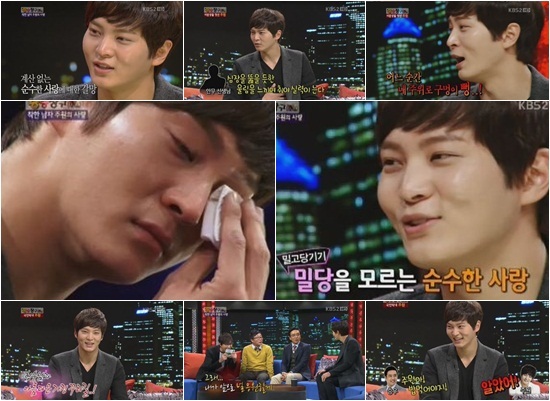 “어머니를 속상하게 한 적이 별로 없다”는 그는 자신의 과거 연애사를 밝혔고, "어른이 되서 나를 보니 사랑을 계산하면서 하고 있더라"라 라면서 눈물을 흘렸다. 과거 '로미오와 줄리엣' 책을 읽을 때마다 울고 가슴 아파했던 경험을 털어놓으며 "그래서 어렸을 때 다른 건 몰라도 사랑만큼은 계산하지 않고 해야겠다고 생각했다"고 말하면서 하염없이 눈물을 흘렸던 것.