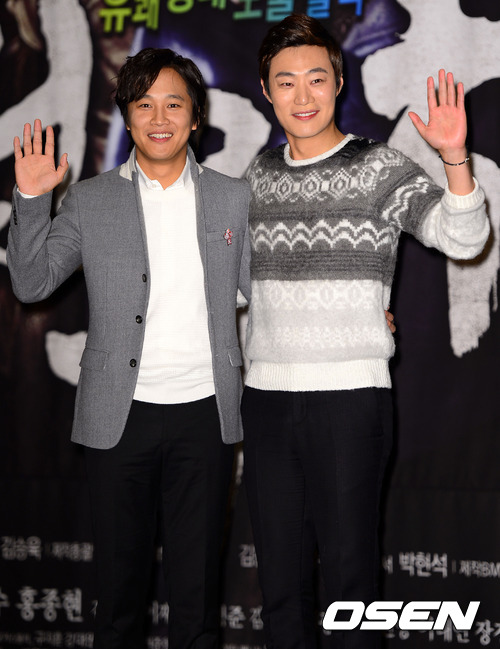 14일 오후 서울 여의도 콘래드서울 그랜드볼룸에서 열린 KBS 새 수목극 ‘전우치’(극본 조명주/연출 강일수/초록뱀 미디어 제작)가 제작발표회에서 배우 차태현과 이희준가 포토타임을 갖고 있다.