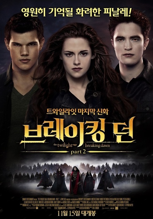 한편 이제는 부모가 된 에드워드(로버트 패틴슨)와 벨라(크리스틴 스튜어트)가 위험에 처한 가족을 지키기 위해 고군분투하는 내용을 담은 '브레이킹던'은 오는 15일 개봉 예정이다.