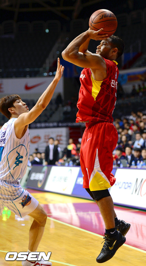14일 오후 고양 실내체육관에서 'KB 국민카드 2012-2013 프로농구' 고양 오리온스와 전주 KCC의 경기 2쿼터 오리온스 전태풍이 점프슛을 시도하고 있다.
