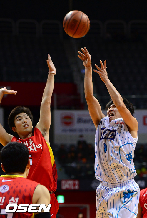 14일 오후 고양 실내체육관에서 'KB 국민카드 2012-2013 프로농구' 고양 오리온스와 전주 KCC의 경기 3쿼터 KCC 임재현이 뱅크슛을 시도하고 있다.