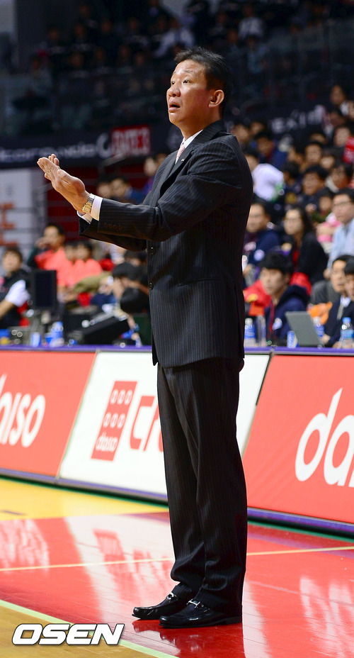 14일 오후 고양 실내체육관에서 'KB 국민카드 2012-2013 프로농구' 고양 오리온스와 전주 KCC의 경기 3쿼터 KCC 허재 감독이 선수들에게 작전지시를 하고 있다.