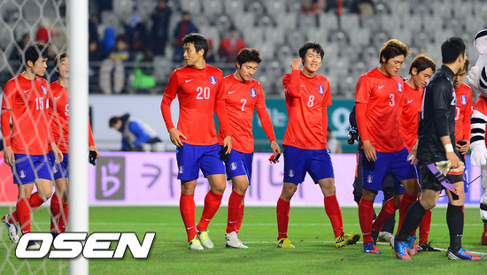 경기종료 후 한국대표팀 선수들이 아쉬운 표정으로 그라운드를 빠져나가고 있다./ soul1014@osen.co.kr