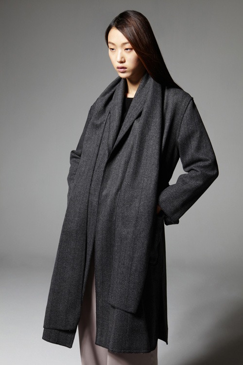 클래식한 느낌의 헤링본 머플러 코트는 오버 사이즈 실루엣과 무릎 라인까지 길게 떨어지는 직선 라인이 모던하고 세련된 이미지를 연출한다. 또한 머플러 디테일을 포인트로 활용했으며, 유니크한 커팅과 절개 라인이 돋보이는 제품이다.