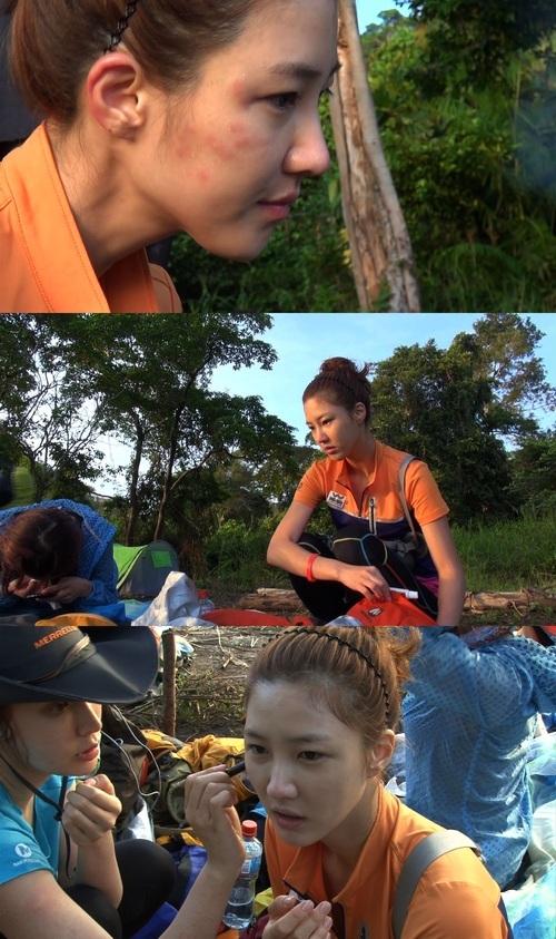 배우 이수경이 파푸아뉴기니에서 모기들에게 침 세례를 받고 울상을 지었다.