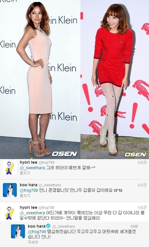 이에 이효리는 “그래. 하라야. 예쁘게 잘 해~”라며 응원의 말을 남겼고 구하라는 “언니 존경합니다. 언니도 갑 중의 갑이에요”라고 훈훈하게 답했다.