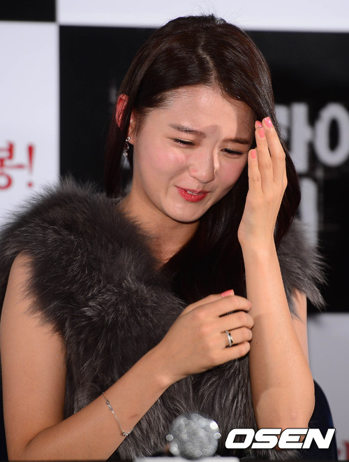 15일 오후 서울 용산구 CGV 용산에서 열린 영화 '돈 크라이 마미' 언론시사회에서 남보라가 기침을 하며 얼굴을 가리고 있다.