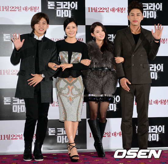 15일 오후 서울 용산구 CGV 용산에서 열린 영화 '돈 크라이 마미' 언론시사회에서 동호 유선 남보라 권현상이 포토타임을 갖고 있다.