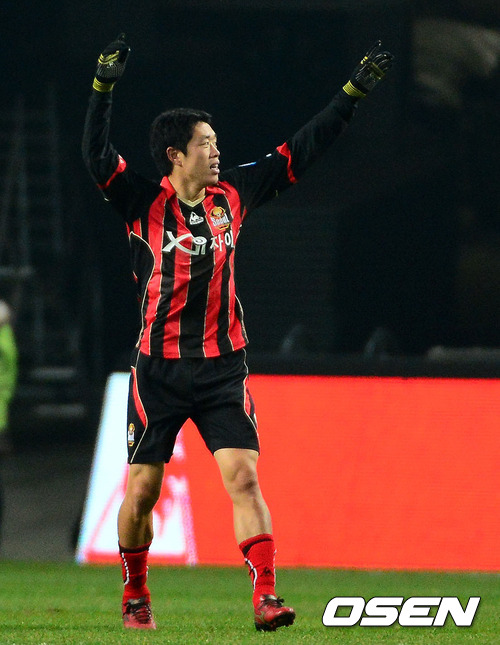 15일 오후 서울 마포구 성산동 서울월드컵경기장에서 열린 '현대오일뱅크 K리그 2012 39라운드' FC 서울과 울산 현대의 경기, 전반 서울 현영민이 골을 성공시키고 환호하고 있다.