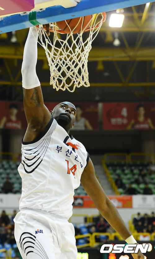15일 저녁 경상남도 창원시 의장구 창원 실내체육관에서 열린 KB 국민카드 2012-2013 프로농구 창원 LG 세이커스와 부산 KT 소닉붐의 경기 3쿼터 KT 데이비스가 덩크슛을 내리꽂고 있다.