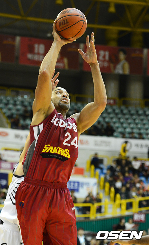 15일 저녁 경상남도 창원시 의장구 창원 실내체육관에서 열린 KB 국민카드 2012-2013 프로농구 창원 LG 세이커스와 부산 KT 소닉붐의 경기 4쿼터 LG 클라크가 레이업슛을 성공시키고 있다.