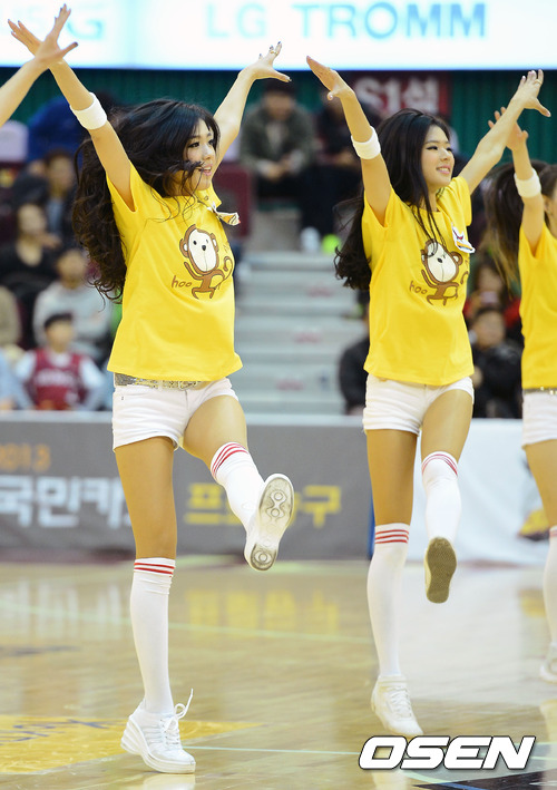 코트 위에서 LG 치어리더 김연정과 박기량이 화려한 무대를 선보이고 있다. / rumi@osen.co.kr