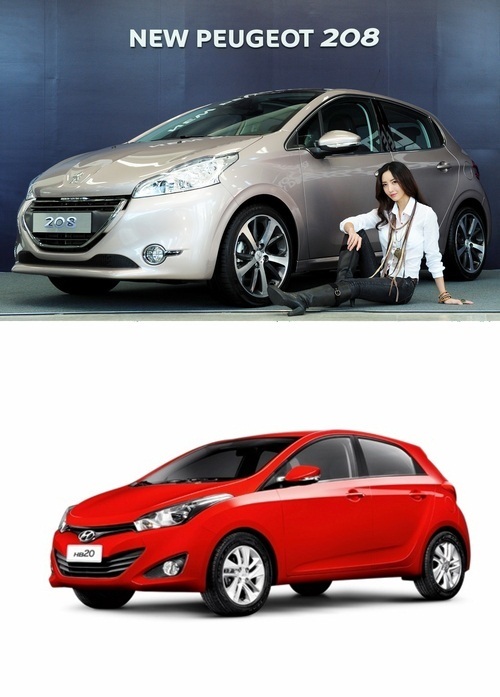 푸조 '208'(위)과 현대차 'HB20' 브라질 출시 모델.