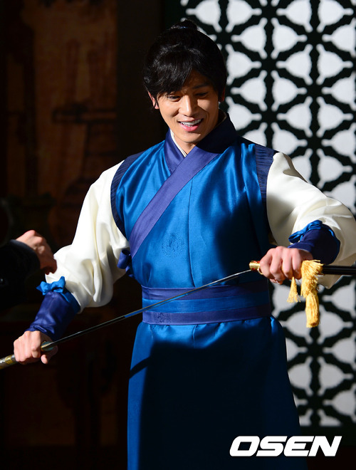 16일 오후 경기 고양시 일산서구 탄현동 SBS일산제작센터에서 열린 SBS 대기획 '대풍수' 기자간담회에서 배우 지성이 포토타임 중 소품을 만지며 환하게 웃고 있다.