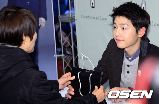 송중기는 이날 열린 커스텀멜로우의 자선파티 프로젝트 "GOOD SHOPPER GOOD MAN" 에서 재능기부 팬 사인회와 플리마켓을 진행했다.