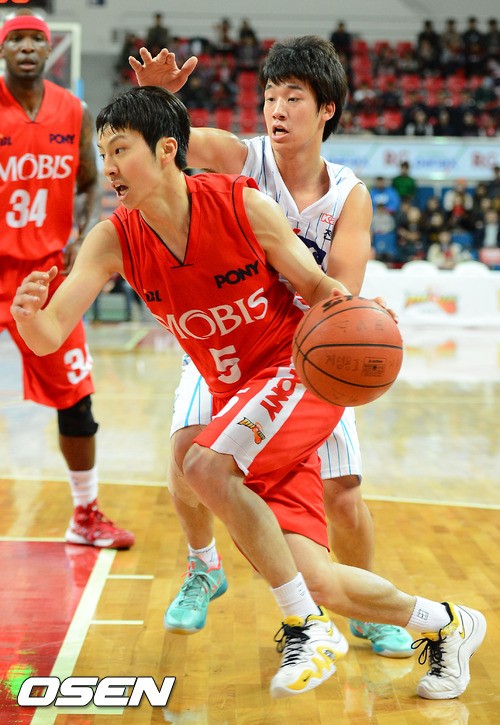 16일 저녁 울산광역시 중구 남외동 동천체육관에서 열린 KB 국민카드 2012-2013 프로농구 울산 모비스 피버스와 전주 KCC 이지스의 경기 2쿼터 모비스 김시래가 돌파를 하고 있다.