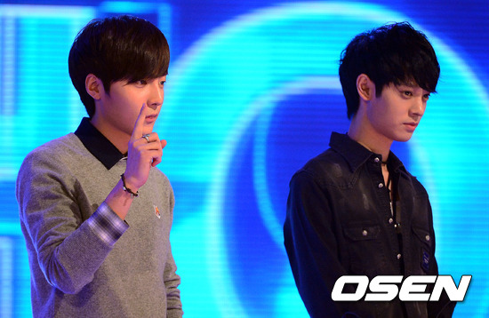 16일 오후 서울 동대문구 회기동 경희대학교 평화의전당에서 열린 '슈퍼스타K4 TOP3 생방송 공연'에서 로이킴과 정준영이 관객석을 향해 인사를 하고 있다.