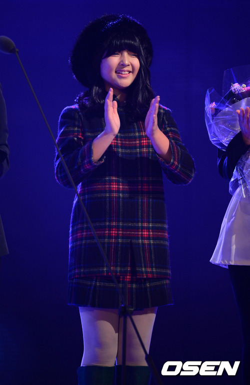 16일 오후 서울 동대문구 회기동 경희대학교 평화의전당에서 열린 '슈퍼스타K4 TOP3 생방송 공연'에서 슈퍼스타K3에 출연한 손예림이 핫이슈상 수상을 위해 무대에 올라 박수를 치고 있다.