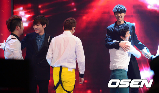 로이킴과 정준영이 TOP2에 진출한 딕펑스를 축하하고 있다. /sunday@osen.co.kr