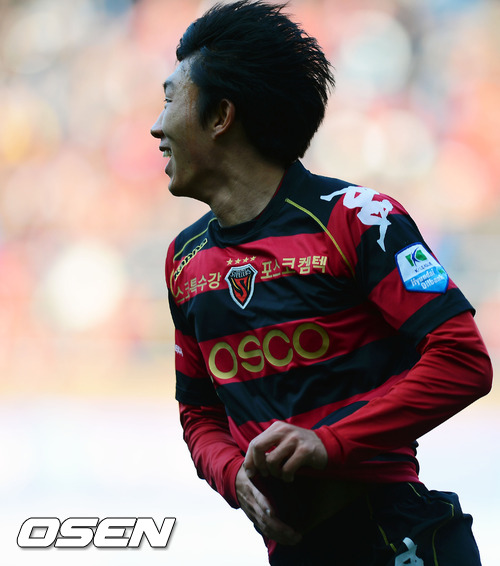 17일 오후 포항 스틸야드에서 열린 '현대오일뱅크 K리그 2012' 포항 스틸러스와 전북 현대의 경기, 전반 포항 고무열이 추가골에 성공한 후 기뻐하고 있다.