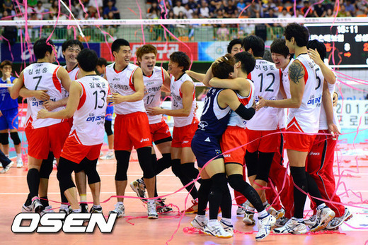 3세트에서도 LIG의 기세는 계속됐다. 까메호가 맹활약을 이어간 가운데 또 하나의 주포 김요한(10점)과 베테랑 이경수(11점)까지 득점에 가세하며 대한항공을 압박했다. 위기도 있었다. 20-15까지 앞서 나간 LIG는 마틴의 백어택과 한선수 류윤식의 블로킹이 연이어 터지며 22-22 동점을 허용했다. 그러나 달라진 LIG는 쉽게 무너지지 않았다. 듀스에 돌입한 LIG는 마틴의 서브 범실에 힘입어 25-24를 만들었고 결국 마틴의 공격 범실로 경기를 끝냈다.