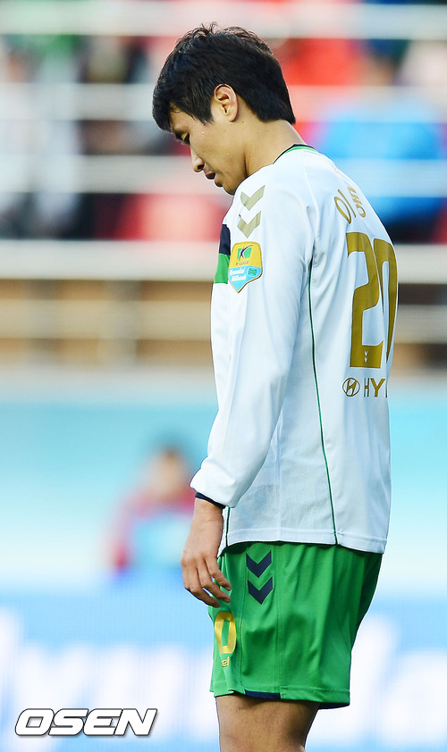 17일 오후 포항 스틸야드에서 열린 '현대오일뱅크 K리그 2012' 포항 스틸러스와 전북 현대의 경기, 후반 이동국이 슛에 실패한 후 고개를 떨구고 있다.