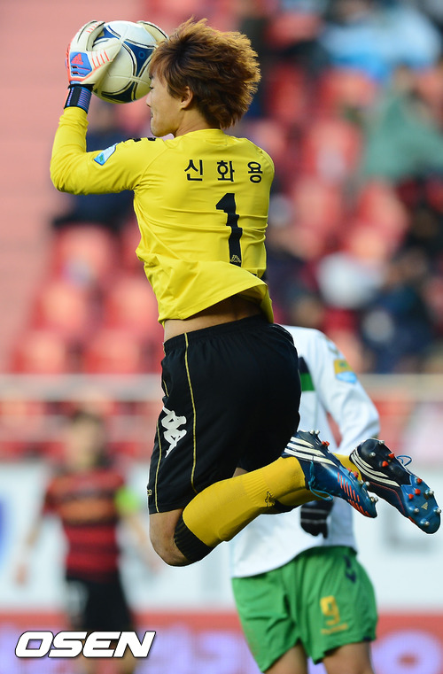17일 오후 포항 스틸야드에서 열린 '현대오일뱅크 K리그 2012' 포항 스틸러스와 전북 현대의 경기, 후반 포항 신화용 골키퍼가 문전에서 볼을 차단하고 있다.