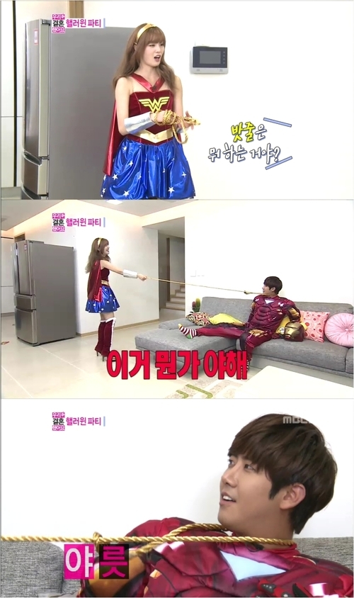 황광희는 지난 17일 방송된 MBC 예능 프로그램 ‘우리 결혼했어요 시즌4’(이하 ‘우결4’)에서 할로윈 파티를 앞두고 영화 캐릭터인 ‘아이언맨’으로 변신했다. 그는 ‘원더우먼’으로 탈바꿈한 가상 아내 한선화가 들고 있는 밧줄을 보고 호기심을 드러냈다.