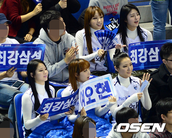 18일 오후 대전 충무체육관에서 열린 '2012-2013 NH농협 V-리그' 삼성화재와 현대캐피탈의 경기, 그룹 EXID가 경기를 관전하고 있다.