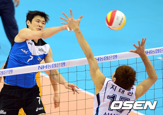18일 오후 대전 충무체육관에서 열린 '2012-2013 NH농협 V-리그' 삼성화재와 현대캐피탈의 경기 1세트 이선규가 공격을 시도하고 있다.