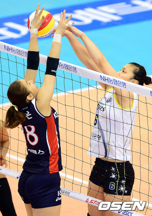18일 오후 대전 충무체육관에서 열린 '2012-2013 NH농협 V-리그' 인삼공사와 도로공사의 경기 1세트 표승주가 공격을 시도하고 있다.