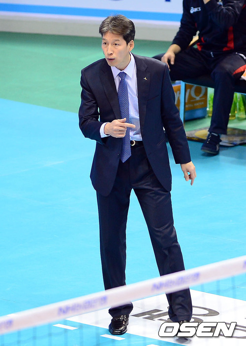 18일 오후 대전 충무체육관에서 열린 '2012-2013 NH농협 V-리그' 인삼공사와 도로공사의 경기 2세트 인삼공사 이성희 감독이 선수들에게 지시를 하고 있다.