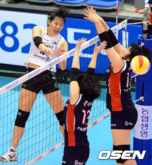 18일 오후 대전 충무체육관에서 열린 '2012-2013 NH농협 V-리그' 인삼공사와 도로공사의 경기 2세트 도로공사 김선영이 공격을 시도하고 있다.