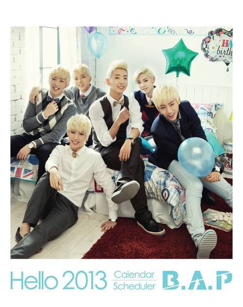 B.A.P는 지난 16일 공식 팬카페를 통해 달력 패키지 '헬로우 2013'과 함께 표지 이미지를 공개했다. 멤버들은 표지를 통해 무대 의상을 버리고 니트와 베스트, 데님과 정장 바지를 착용해 훈훈한 미소년 매력을 과시했다.