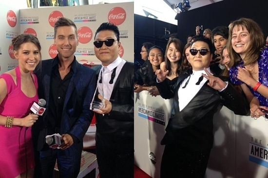 싸이는 19일 자신의 트위터를 통해 "뉴미디어상 수상자가 됐다(I received the New Media Honoree award from Lance Bass!)"고 밝혔다. 이날 싸이는 AMA의 프리쇼 '코카콜라 레드카펫 라이브쇼'를 통해 수상의 기쁨을 맛봤다.