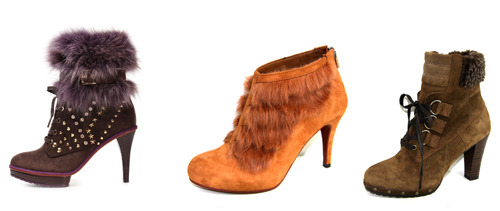 볼륨감 있는 퍼플 계열의 퍼를 장식한 뒤 스트랩을 두른 퍼 부츠는 스터드 장식과 매치되어 펑키한 매력을 자아낸다. 가지런히 층을 이루어 트리밍 된 고급스러운 브라운 퍼 부츠는 카멜 컬러에서 느껴지는 우아함과 맞물려 모던하고 페미닌한 스타일로 연출 할 수 있다. 와일드한 이미지의 양털 부츠는 매니시한 디자인에 레이스 업과 스터드 장식이 가미돼 경쾌하다.