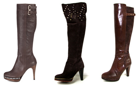각선미를 강조한 슬림한 디자인과 반짝이는 플랫폼과 힐은 시선을 아래로 분산시켜 다리를 더욱 길고 가늘어 보이게 한다. 스웨이드 소재와 골드 스터드의 매치는 고급스러움과 화려한 매력을 동시에 느낄 수 있으며 무릎 부분을 한 번 접는 커버 스타일로도 연출 가능하다.