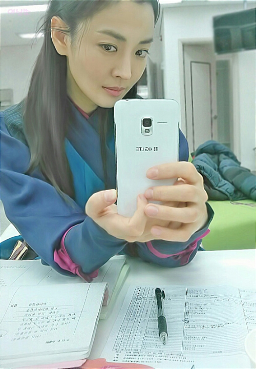 사진 속 김소연은 사극 속 의상을 입고 그림으로 그린 듯 뚜렷한 이목구비를 자랑하는 모습이다. 탁자에는 꼼꼼히 줄을 치며 체크한 대본이 놓여져 있어 그의 연기 열정을 보여주고 있다. 성숙한 외모로 주목받았던 김소연이 한결 어려보이는 모습이다.
