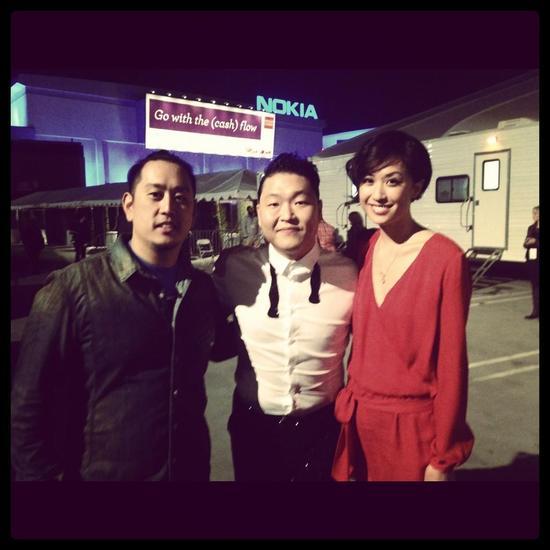 이 사진은 두 사람이 제40회 아메리칸 뮤직 어워즈(American Music Awards, 이하 AMA)에서 만나 촬영한 것으로 추측됐다. 이날 미국 로스앤젤레스 노키아 씨어터에서 AMA가 개최됐으며 싸이는 사진 속 의상을 입고 AMA 프리쇼에 참석했다.