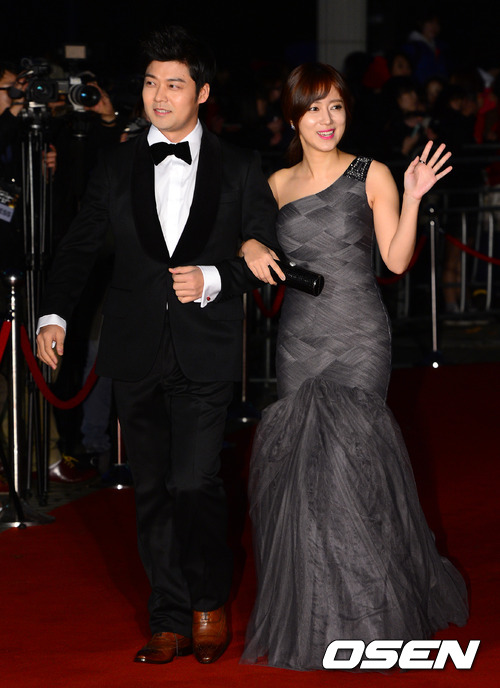 19일 오후 서울 송파구 방이동 올림픽공원 올림픽홀에서 열린 '2012 대한민국 대중문화예술상' 시상식에서 사회를 맡은 전현무, 최송현 아나운서가 레드카펫을 밟고 있다.
