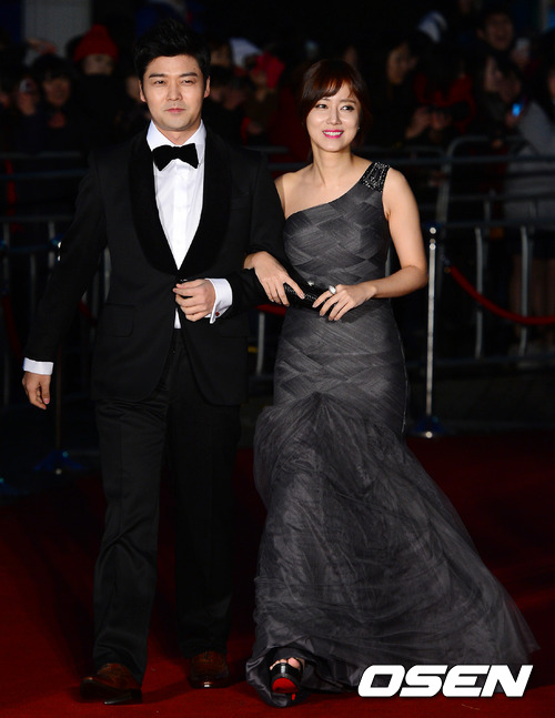 19일 오후 서울 송파구 방이동 올림픽공원 올림픽홀에서 열린 '2012 대한민국 대중문화예술상' 시상식에서 사회를 맡은 전현무, 최송현 아나운서가 레드카펫을 밟고 있다.
