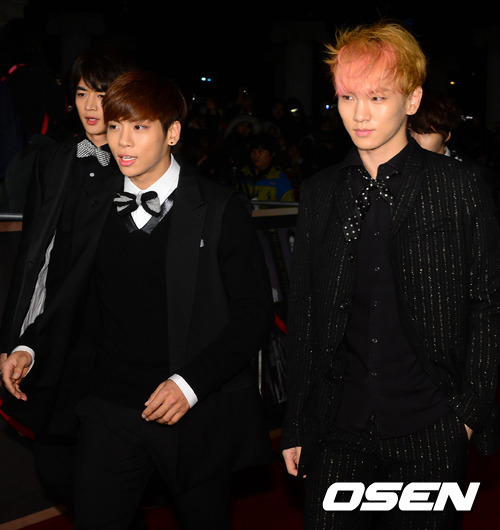 19일 오후 서울 송파구 방이동 올림픽공원 올림픽홀에서 열린 '2012 대한민국 대중문화예술상' 시상식에서 가수 샤이니가 레드카펫을 밟고 있다.