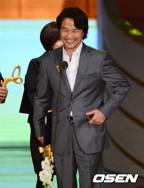 19일 오후 서울 송파구 방이동 올림픽공원 올림픽홀에서 열린 '2012 대한민국 대중문화예술상' 시상식에서 배우 한석규가 대통령 표창을 수상하고 소감을 말하고 있다.