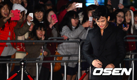 19일 오후 서울 송파구 방이동 올림픽공원 올림픽홀에서 열린 '2012 대한민국 대중문화예술상' 시상식에서 배우 김수현이 레드카펫을 밟고 있다.