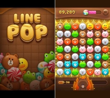 한국에도 선보인 '라인팝'은 1분 동안 같은 모양의 캐릭터를 3개이상 맞추면 점수를 획득하는 타임어택방식의 퍼즐게임이다. 초코볼을 닮은 귀여운 동물 블록들은 ‘라인’의 스티커 캐릭터 브라운, 코니, 문, 샐리다. 또 개인 최고 점수를 기준으로 ‘라인’메신저 친구들과 순위를 비교하거나 친구를 초대하여 게임을 함께 즐길 수도 있다.