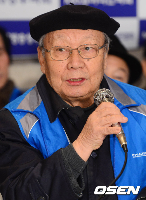 20일 오후 서울 여의도동의 한 음식점에서 열린 한국방송연기자노동조합 긴급 기자회견에서 원로배우 최명수가 발언을 하고 있다.